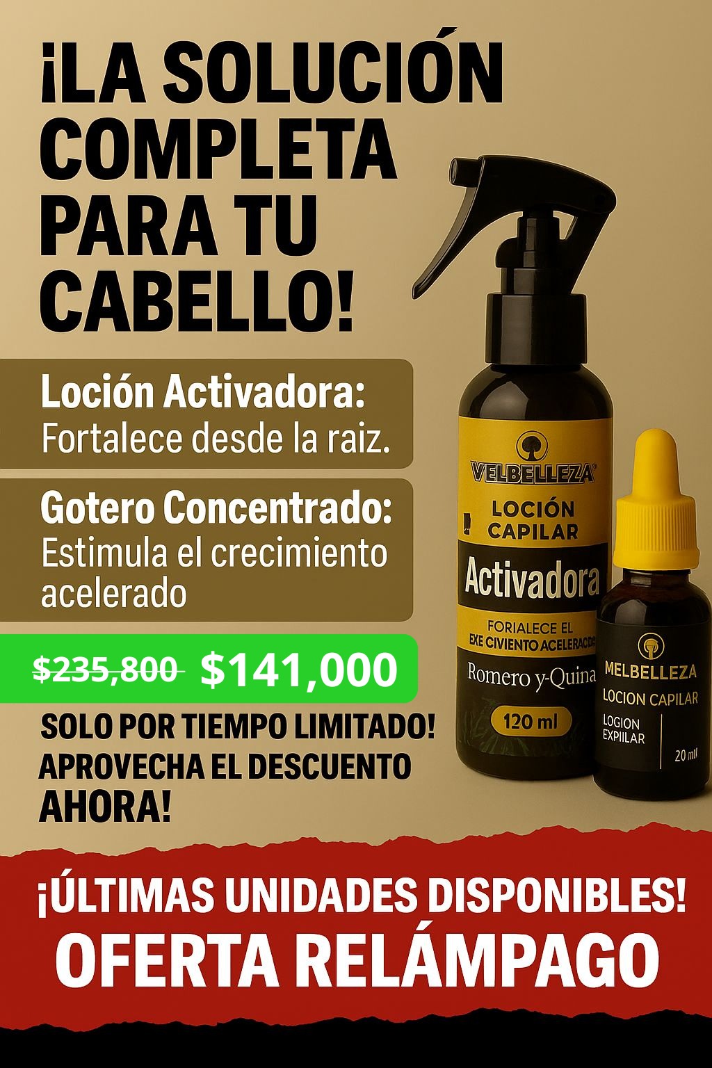 Gotero Concentrado: Nutre en profundidad, estimula el crecimiento acelerado y protege tu cabello de futuros daños.